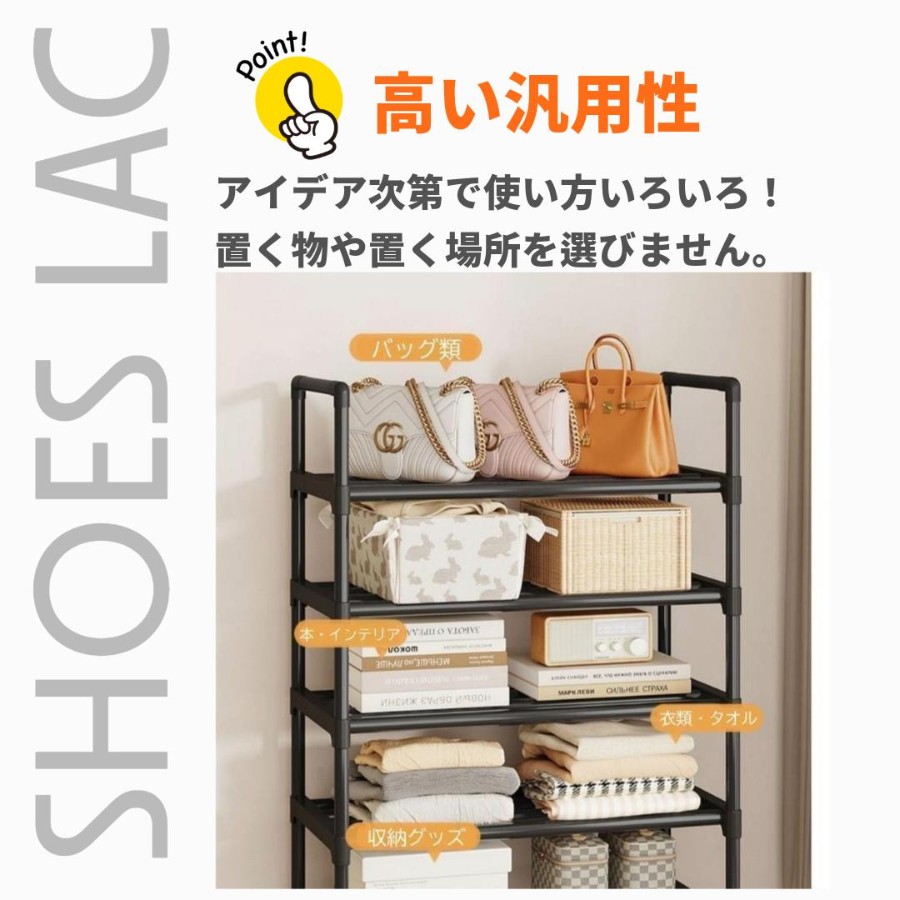 5段構造で、革靴・スニーカー・ブーツまでたっぷり収納できます。