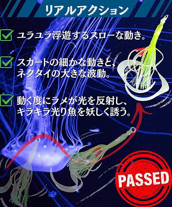 ・vタコベイトのスカートは小さく自然な動き、カーリーネクタイは大きなアピール力のある動きで魚を誘います。