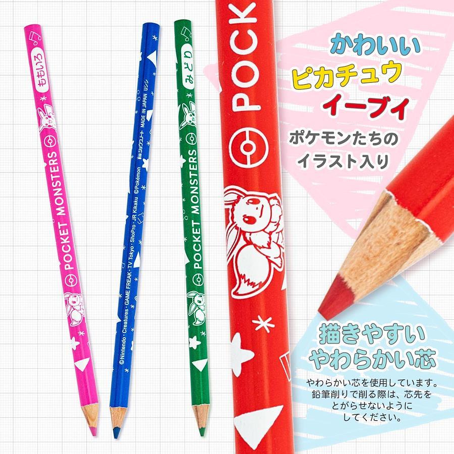 人気キャラクターポケットモンスターの色鉛筆12色です。軸にもキャラクターが印刷されています。<br>やわらかい芯を使用しておりますので鉛筆削りで削る際は、芯先を尖らせないようにしてください。削り器の中で折れて芯詰まりの原因になる場合があります。<br>芯先調整ができる削り器では必ず一番『太い』の設定で削ってください。<br>筆記、図画以外の用途に使用しないでください