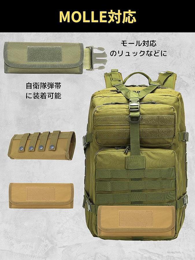 MOLLE対応のためベルトやモール対応のリュックなどに装着可能です。
