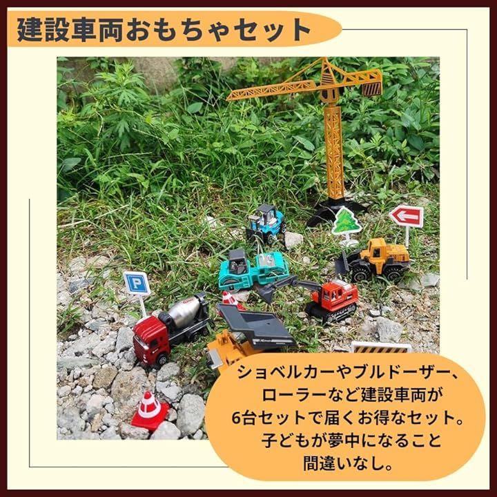 「建設車両おもちゃセット」ショベルカーやブルドーザー、ローラーなど建設車両が6台セットで届くお得なセット。