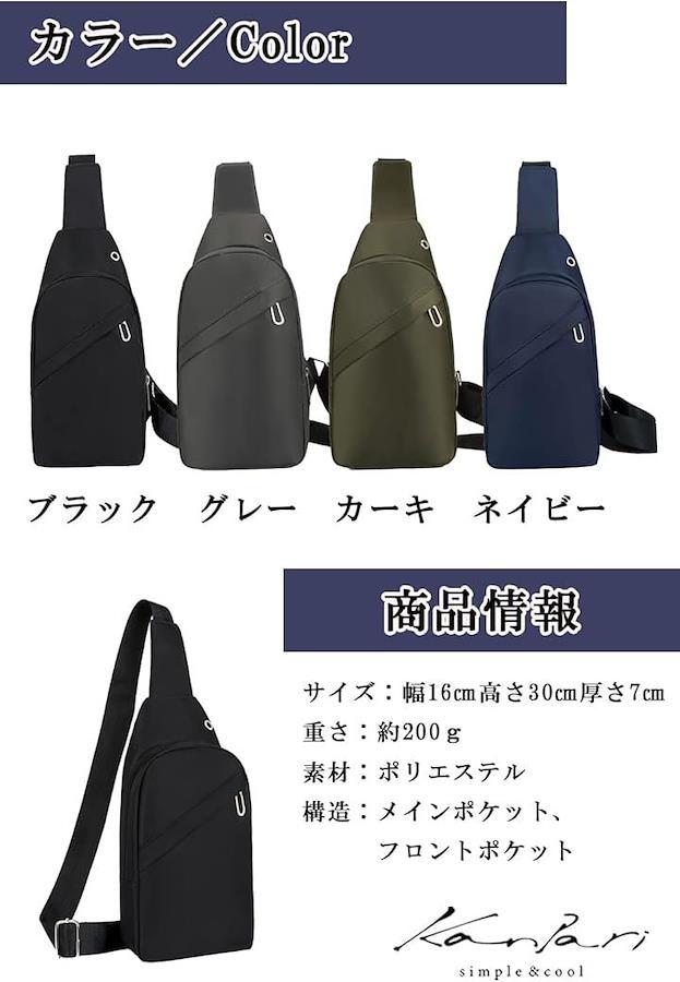 「軽量コンパクトなボディバッグ」Kanpariのボディバッグは、軽量でコンパクトなサイズ感が特徴で、日常の持ち運びに最適です。フロントポケットと背面ポケット、内ポケットが付いており、スマートフォンや財布などの小物を効率的に整理できます。