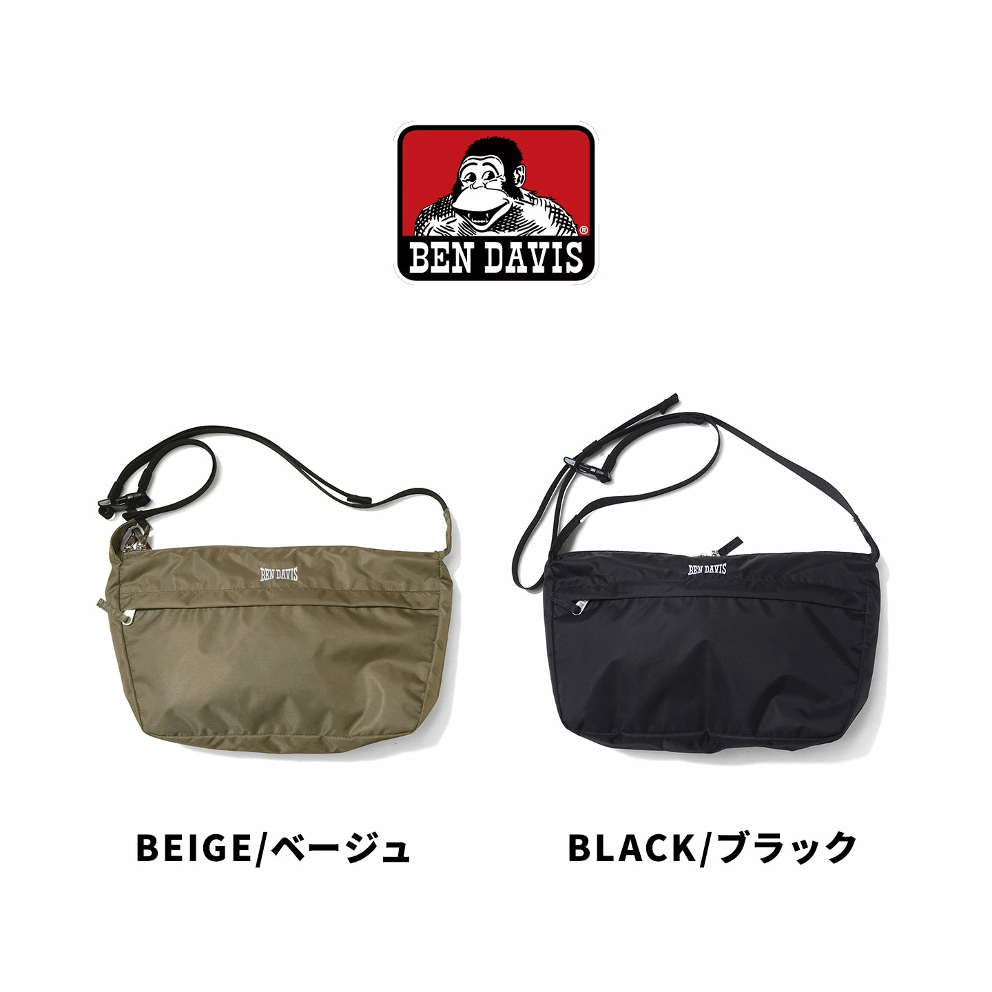【ショルダーバッグ】軽量なナイロン生地を使用した持ち運びやすいショルダーバッグ。フロントの「BEN DAVIS」刺繍アクセントに。スタイリッシュなデザインで、様々なコーディネートに合わせやすいのが魅力です。シンプルなデザインで男女問わずユニセックスで使えます。