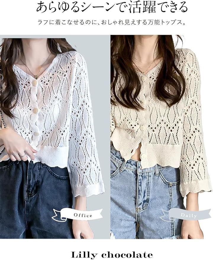 繊細な透かし編みが魅力のショート丈カーディガンになります。