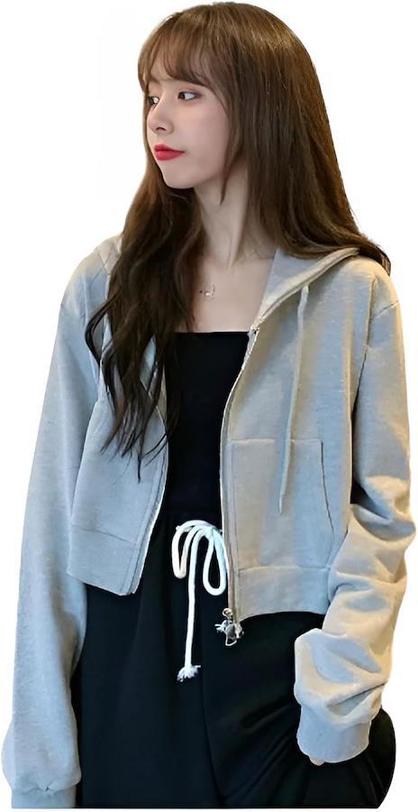 *「人気のへそ出しショート丈フード付きパーカーは、カジュアルでおしゃれなスタイルを叶える魅力的な必須アイテム。」ショート丈のデザインは、ラフなスタイリングが好きな方や韓国トレンド感を取り入れたい方にぴったりです。