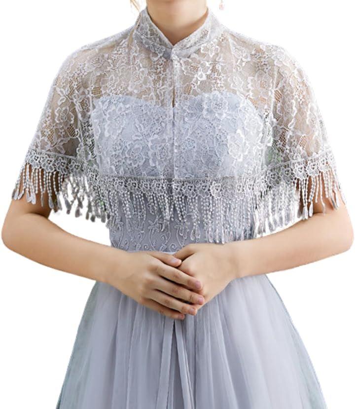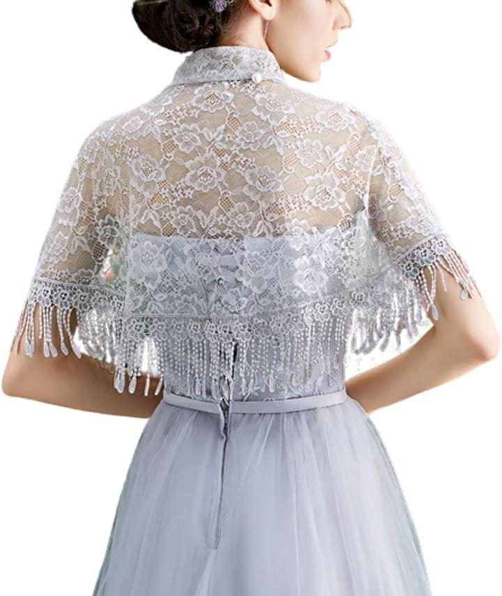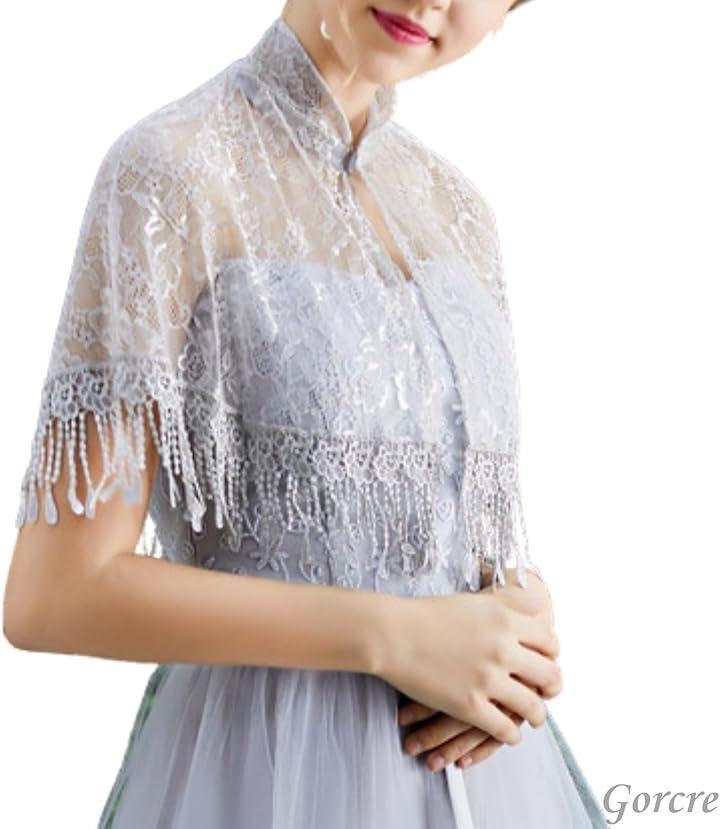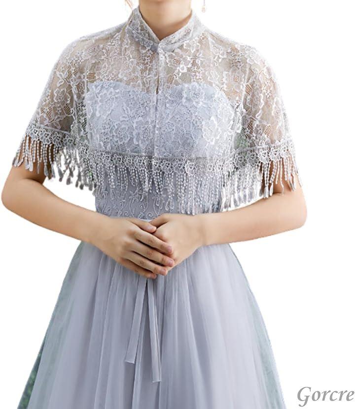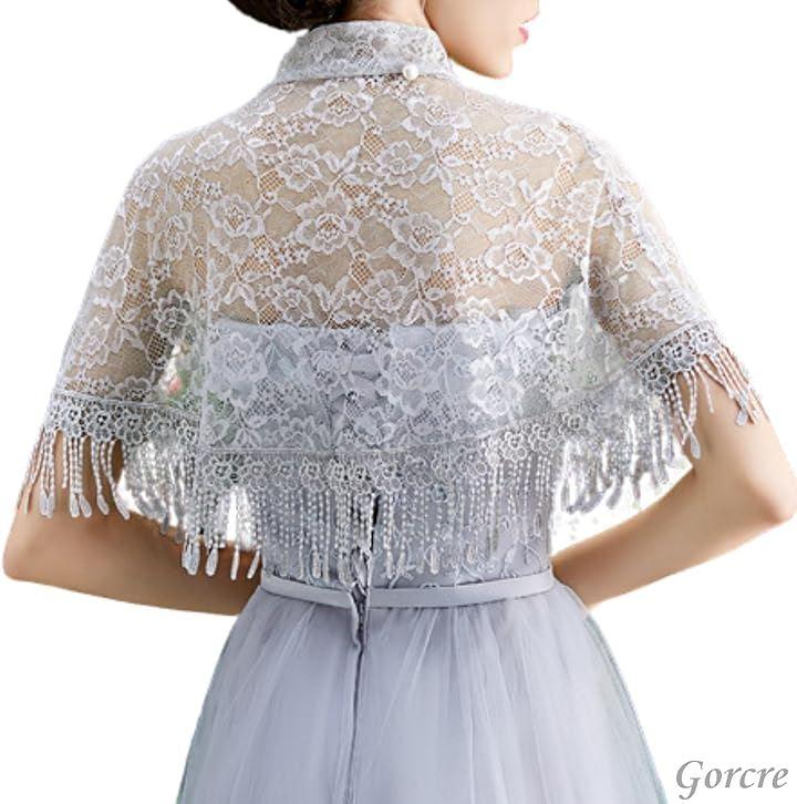 ドレスに羽織るだけで、花柄のレースが華やかで上品な印象に。