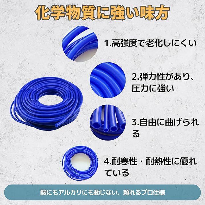 「化学薬品への強い耐性」 このシリコンチューブは、酸やアルカリ、化学薬品、溶剤などに優れた耐性を持ち、工業用途での信頼性が抜群。