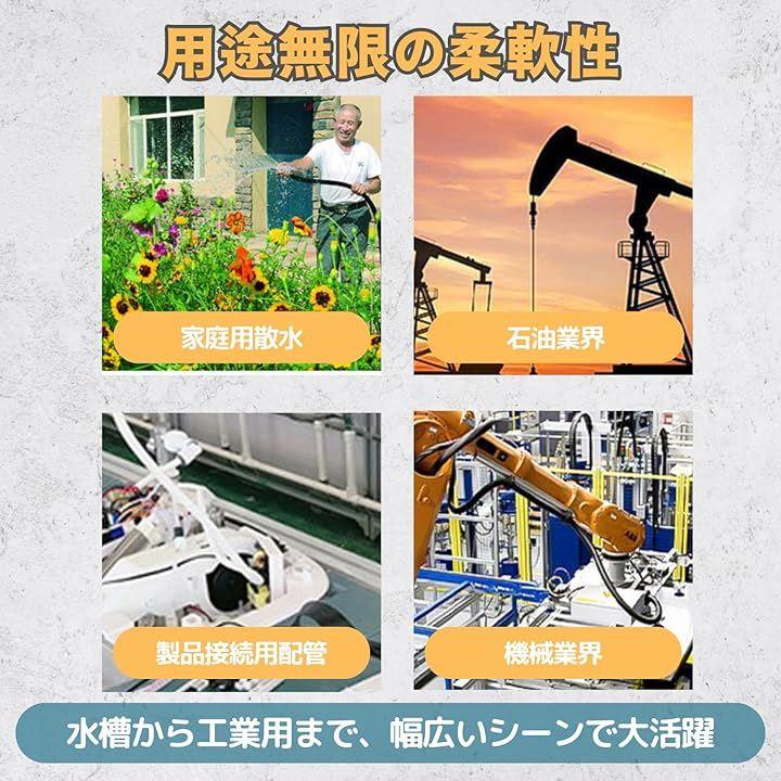 「用途の広さと便利さ」 水槽のエアホース、加湿器の給水ホース、排水管、工業用ポンプなど、多岐にわたる用途に活躍。