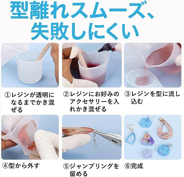 柔らかいシリコン素材で型離れがスムーズですので、レジンを注ぐだけで、美しい仕上がりが実現し、失敗しにくいため、初心者でも簡単にプロのような仕上がりが期待できます。