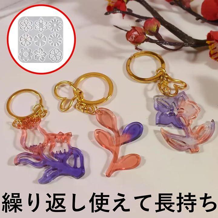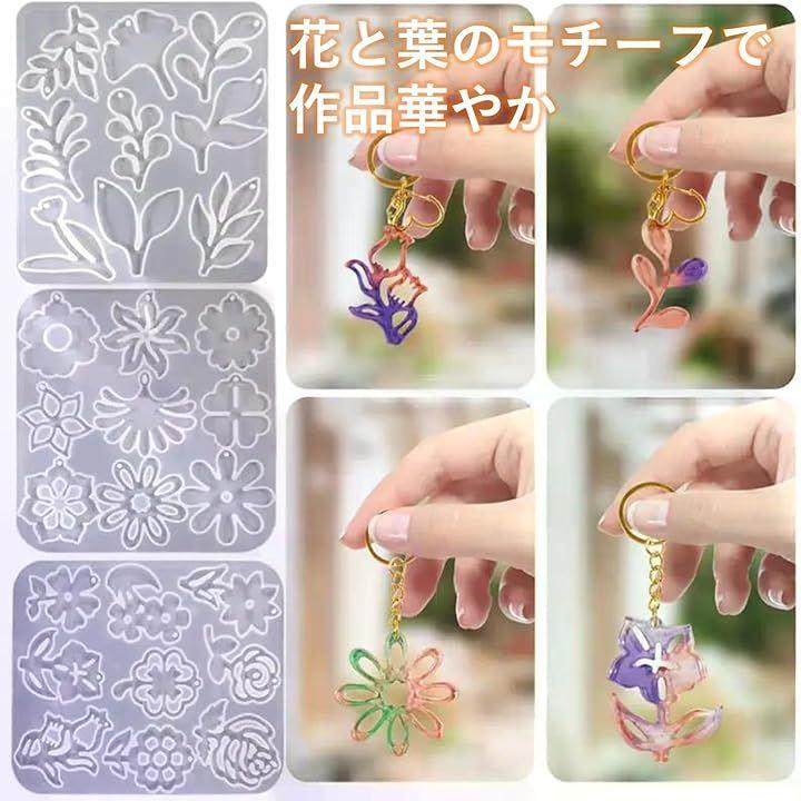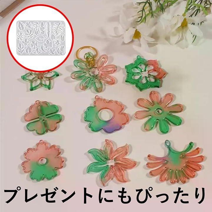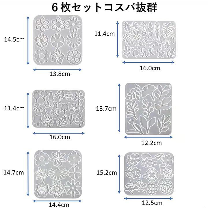 「シリコンモールド 6個セット ペンダント キーホルダー イヤリング ピアス用 花と葉形」