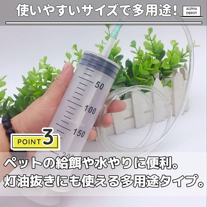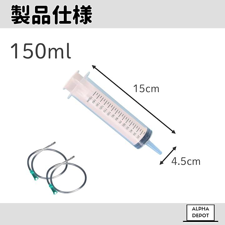「商品詳細」シリンジx1本 / チューブ(約30cm)x2 「容量」100ml / 150ml / 200ml / 300ml / 「材質」プラスチック