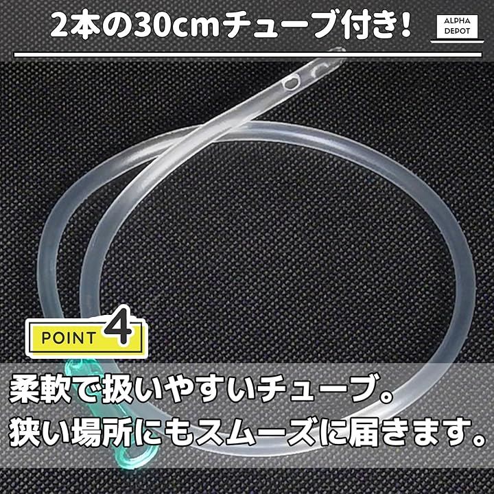「高品質素材を採用」2本の30cmチューブが付属しており、狭い箇所にもしっかり届く設計です。