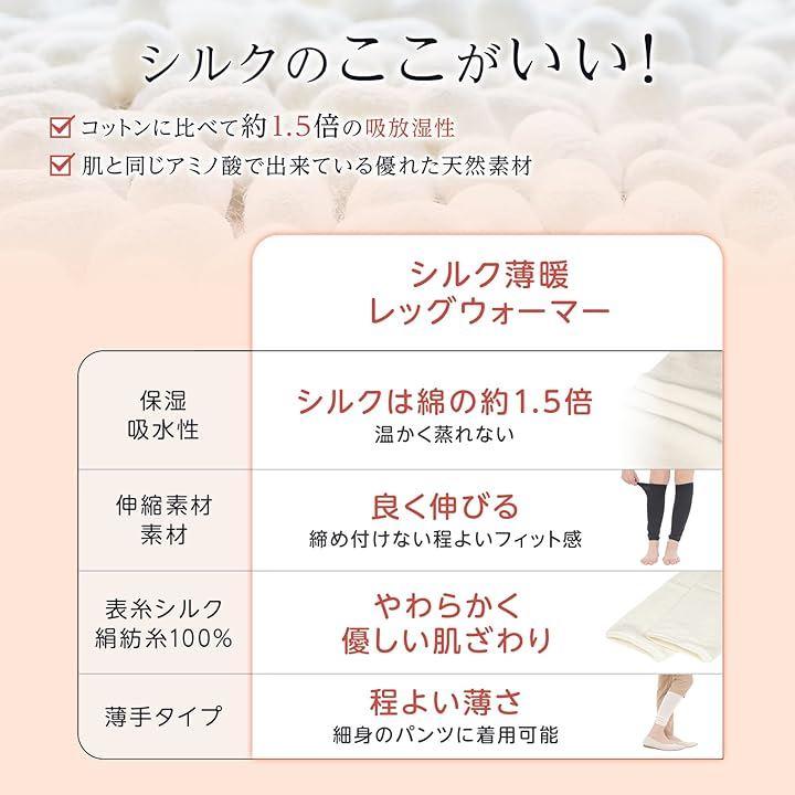 「シルク薄暖レッグウォーマー」は、100%シルク素材の優れた保湿力と吸湿・放湿性で、1年中快適な冷え対策ができるアイテムです。