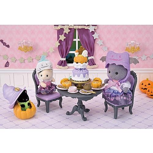 季節限定商品。女の子、赤ちゃん、小さい赤ちゃんのお人形と、ハロウィンパーティーが楽しめるテーブル、いす、スイーツ、小物のセットです。おばけに変身できるマントや、形が変わるケーキ、かくれんぼができるジャック・オ・ランタンなど、楽しいしかけがいっぱい!ペルシャネコの女の子とチャコールネコの赤ちゃんのマントをひっくり返すと、おばけのかぶりものになります。ベリーのショートケーキをひっくり返して重ねると、ごうかな2段ケーキに変身します。ケーキとカップケーキにはチョコプレートやろうそくを差すことができます。ジャック・オ・ランタンの中にはほしぞらネコの小さい赤ちゃんが入ることができ、帽子をかぶせるとかくれんぼ遊びができます。ジャック・オ・ランタンの裏側はベビーソファとして使えます。