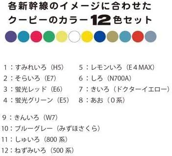 1:すみれいろ(H5)2:そらいろ(E7)3:蛍光レッド(E6)4:蛍光グリーン(E5)5:レモンいろ(E4MAX)6:しろ(N700A)7:きいろ(ドクターイエロー)8:あお(0系)9:きんいろ(W7)10:ブルーグレー(みずほさくら)11:しゅいろ(800系)12:ねずみいろ(500系)
