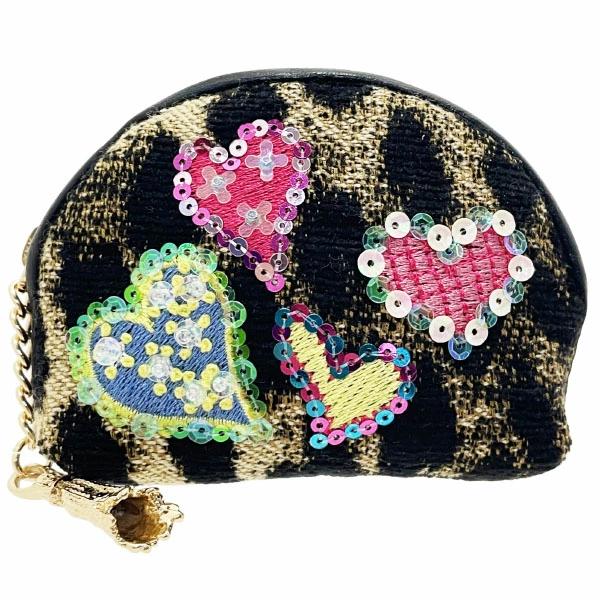 「Think Bee! 」から、レオパード柄ジャカード織生地を使用したアニマルハート ミニポーチのご紹介です。前面に色とりどりのミシン刺繍をハート型に施し、ビーズ、スパンコールがあしらわれた大人キュートなデザイン☆タッセルモチーフのゴールドチャームも素敵なワンポイントに。小銭入れとして使ったり、アクセサリーなど細々した物を入れておくのに、ちょうどいいサイズ。手のひらサイズのチャーミングなおすすめアイテムです★