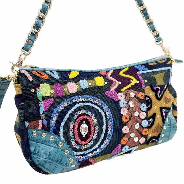 「Think Bee! 」から、リッピ 2WAYショルダーバッグのご紹介です。イタリア製の珍しい幾何学模様の織生地に、凹凸のあるさがら刺繍とキラキラ光るビーズやスパンコールをあしらいカラフルで個性的な質感が魅力的なデザイン☆やや小ぶりながら長財布が入る使い勝手の良いサイズ感も◎!大人の女性に相応しいチャーミングなおすすめの逸品です★