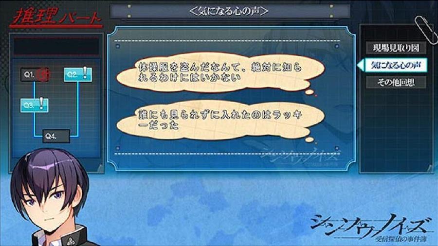 心の声が手掛かりとなる推理システムゲーム中で発生する事件は、提示される手がかりを元にプレイヤー自身が推理し解き明かすことで、謎解きの快感が得られます。