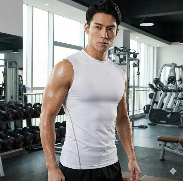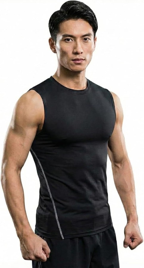 身体に吸い付くようなタイトな着用感が、鍛え上げた大胸筋や腹筋の凹凸を美しく強調します。