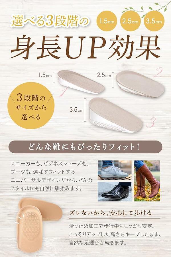 「商品仕様」素材:高弾性シリコン+ベルベット|サイズ:1.5cm/2.5cm/3.5cm(3タイプ)|セット数:左右1ペア|カラー:グレー、ベージュ|タイプ:ハーフインソール