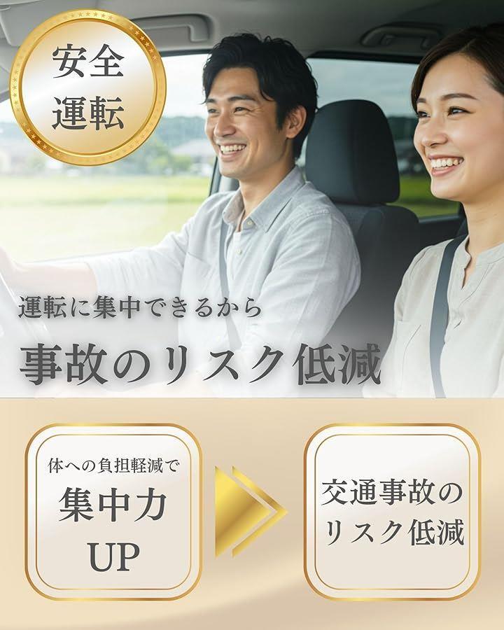 体の負担が軽減されることで運転中のストレスが低減し、運転に集中できるコンディションを維持します。
