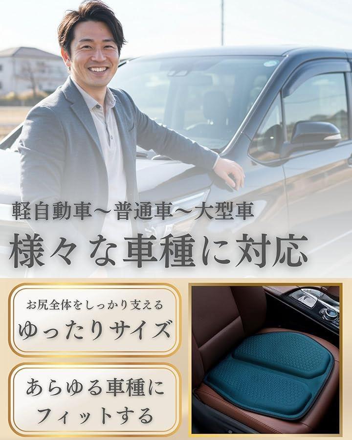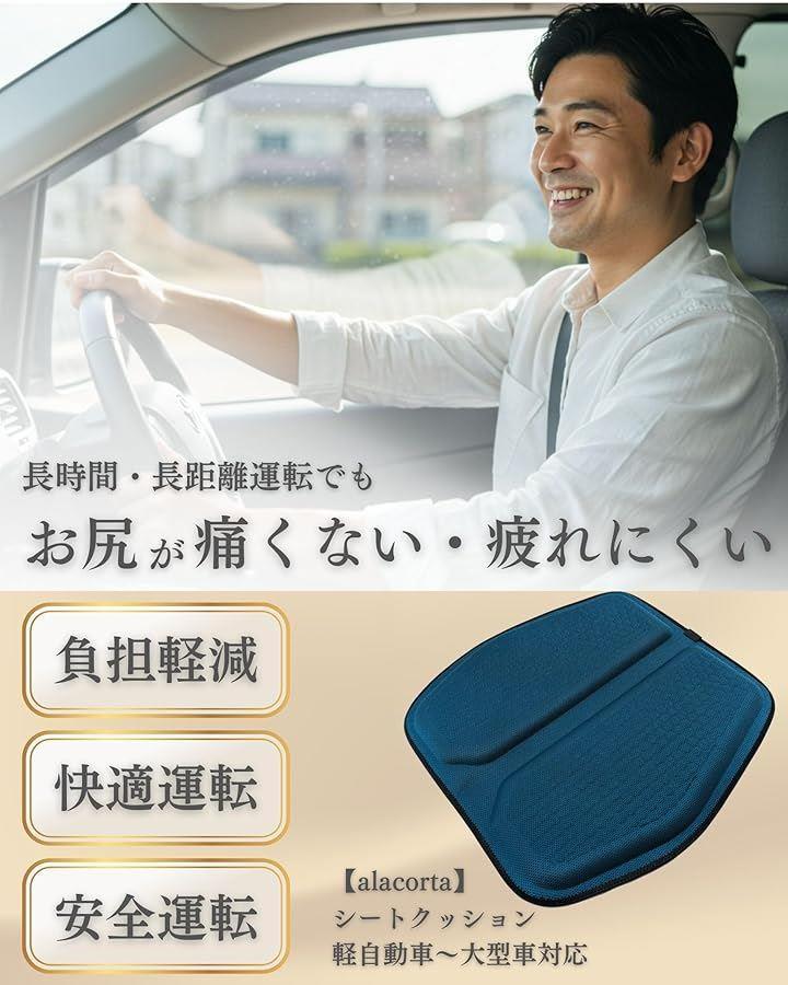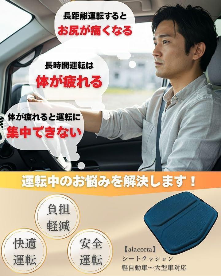 「こんなお悩みありませんか?」「長距離運転するとお尻が痛いくなる…」「長時間運転で体が疲れる…」「体が疲れると運転に集中できない…」シートクッションはそんなお悩みを解決します。