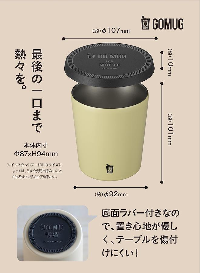 3営業日以内に発送≪新品未開封品≫:インスタントヌードルをそのまま入れるだけ!!最後の一口まで熱々を!!キャンプやアウトドアでも活躍すること間違いなし。/気温15度の少し肌寒い環境下で、NOODLE GOMUGを使ったときと、使わなかったときを比べたらなんと!最大15度も温度差がありました。/インスタントヌードル好きなら使わない手はないですね。最後の一口まで熱々を食べたい方は、是非 ヌードルゴーマグ をお使い下さい。/スープが飲みやすいポイントはNOODLE GOMUGの口が、カップより少しだけ低いので、口当たりが良く、飲みやすい。美味しいスープを最後の一滴まで楽しめます!/底面ラバー付きなので、置き心地が優しく、テーブルを傷付けにくいのも嬉しいポイント。直接食べ物や飲み物を入れて保温ステンレスマグとしても使えます。