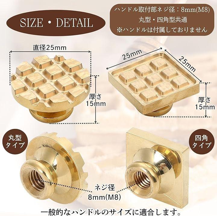 「サイズ」丸型:直径25mm・厚さ15mm、四角型:縦25mm・横25mm・厚さ15mm ハンドル取付部ネジ径:M8(丸型・四角型共通)