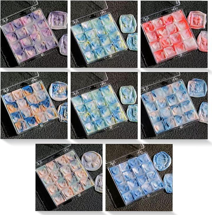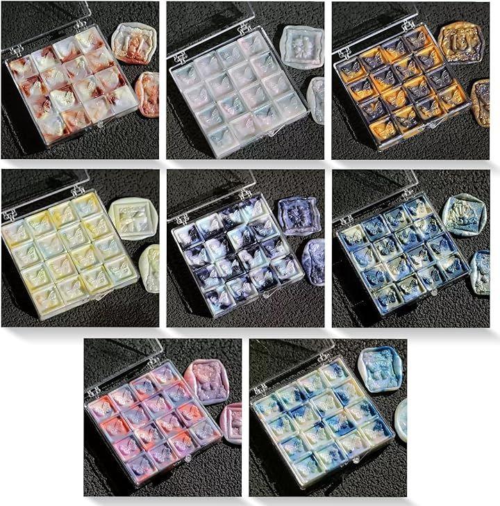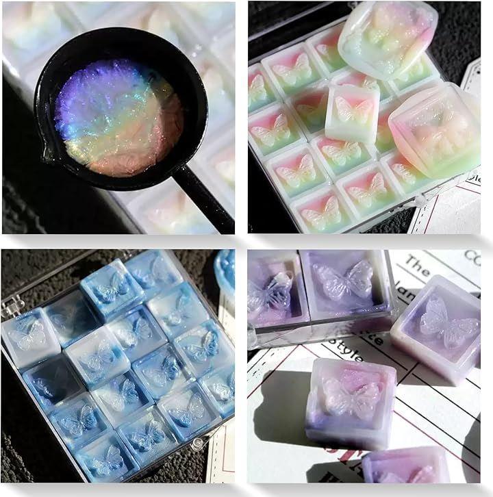 「24色 96個 各4個 蝶の標本」シーリングワックス キューブ スクエア シーリングスタンプ マーブル オーロラ 封蝋 手紙 レター 結婚式 招待状