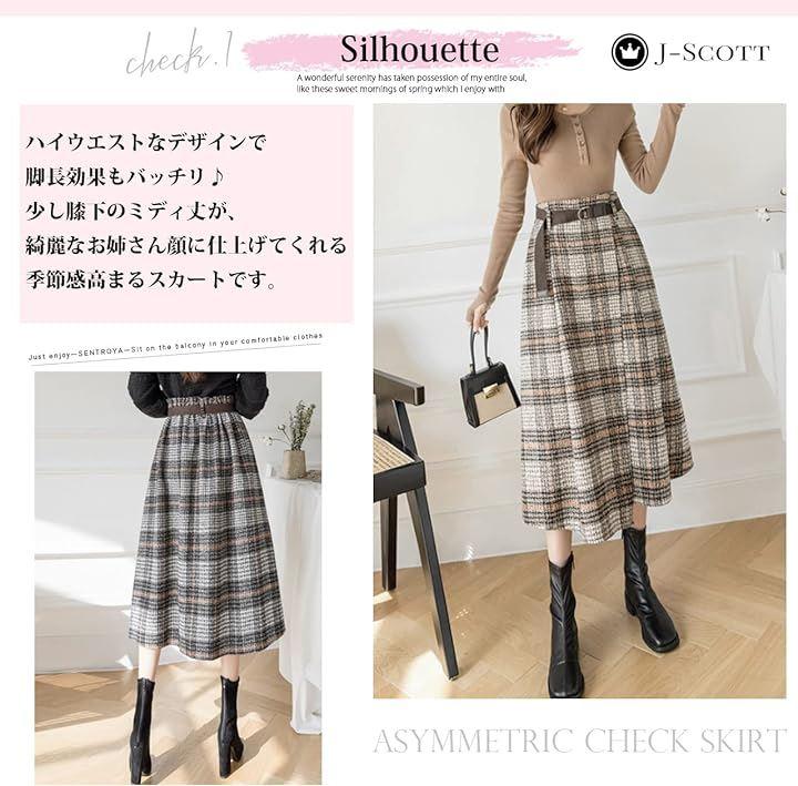あったか生地で季節を楽しめる大人可愛いチェック柄スカートの登場です。温かみのある大人チェックデザイン&アシンメトリーのミディ丈でコーディネートの主役に使えるアイテムです。