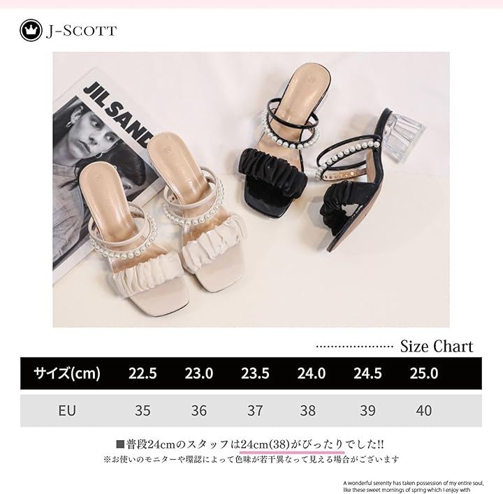 「サイズ/カラー」 サイズ:22.5~25.0cmの6サイズ展開 存在感のあるフェミニンなディテールが、クールな黒に洗練感をプラスする「ブラック」と、優しいヌードカラーにクリアなヒールが清涼感増す「アイボリー」の2色展開にてご用意しております。