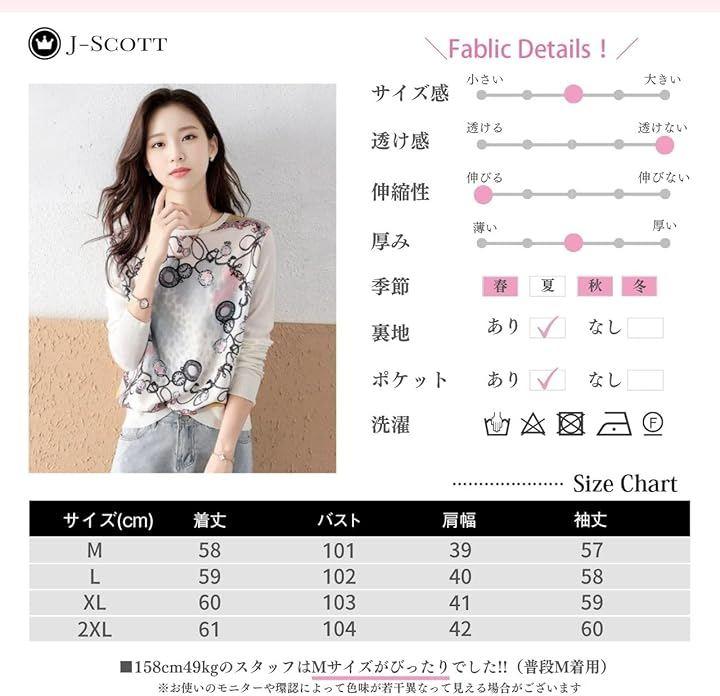 着丈/バスト/肩幅/袖丈 M: 58/101/39/57 L: 59/102/40/58 XL: 60/103/41/59 2XL: 61/104/42/60 *158cm/49kgのスタッフの場合:Mがジャストサイズでした(普段M着用)