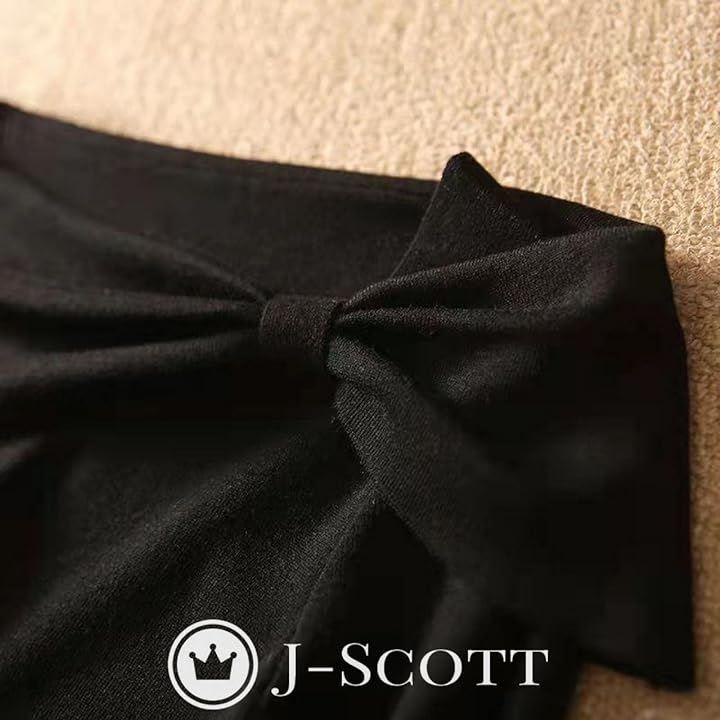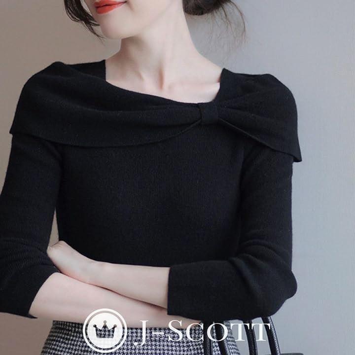 すっきりと上品なボートネックに大振りなリボンを施したような胸元が、凛とした女性らしさを底上げします。