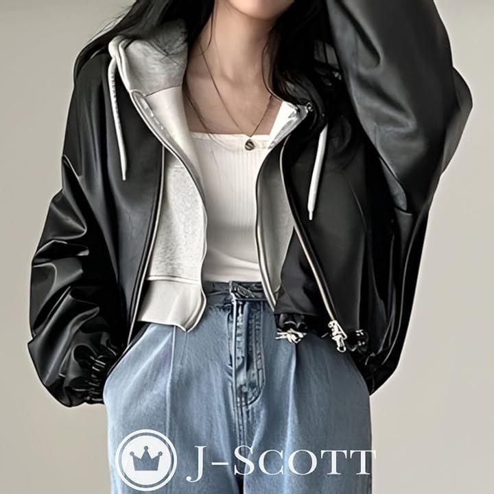 レザーライクな なめらかな光沢がシックなムードを演出するブルゾン。