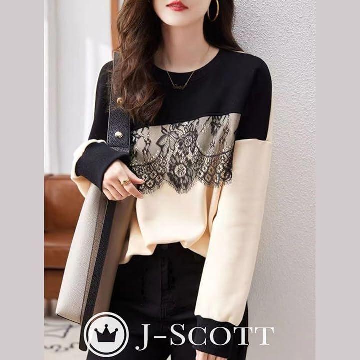 Jay Scott Lace-Lined Top, Loose Fit, Two-Tone Pullover, 1/4 Sleeves, Unlined, Stylish Casual Style, JS101