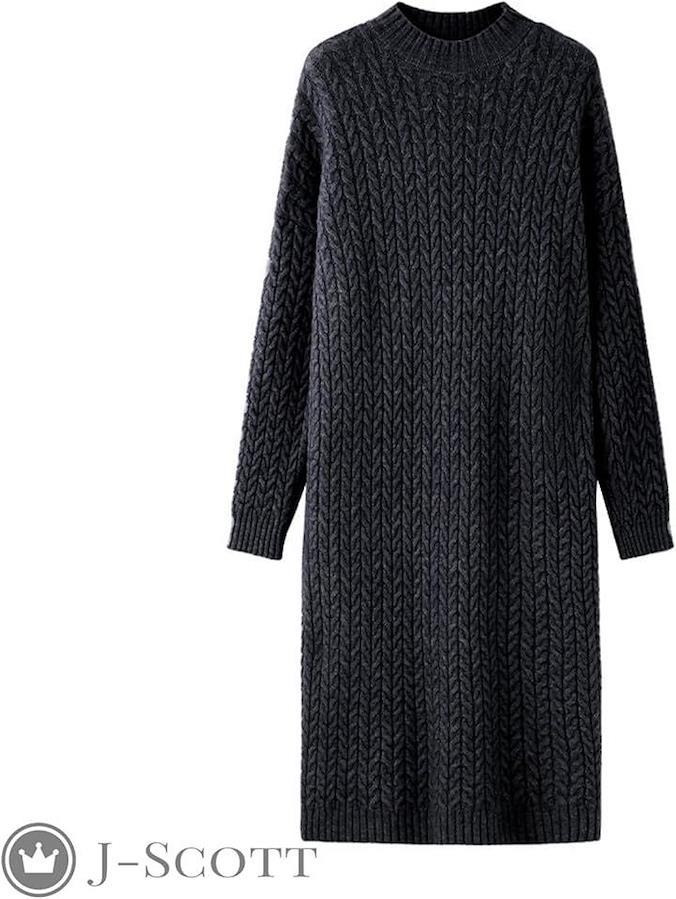 立体感のあるもこもことしたボリュームを作り出すケーブル編みが縦長のラインを作り出し、スタイルアップ効果も抜群です。