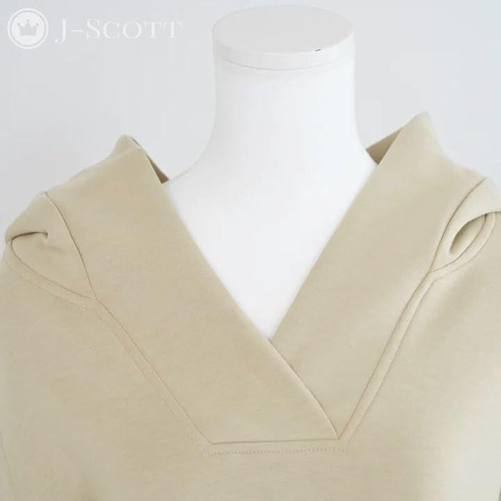 Vネックからのぞくデコルテが華奢な印象を演出し、そこからつながるような大振りのフードがスタイルのアクセントになって。