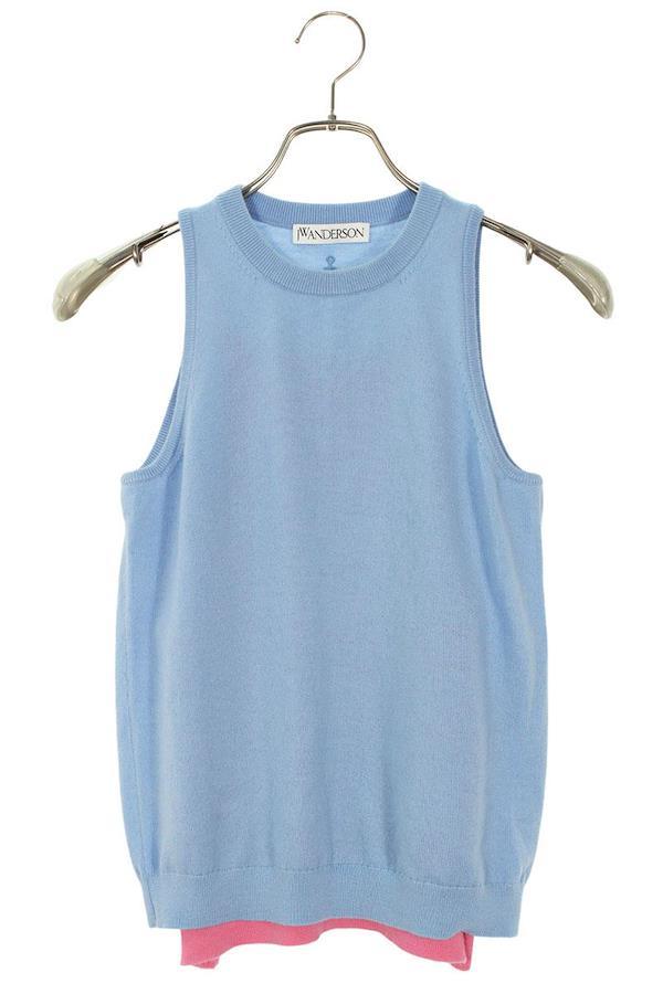 J.W. Anderson Layered Knit Tank Top (Light Blue x Light Pink), Size S, Size 619052, Women's, Pre-owned, bb380#rinkan*D