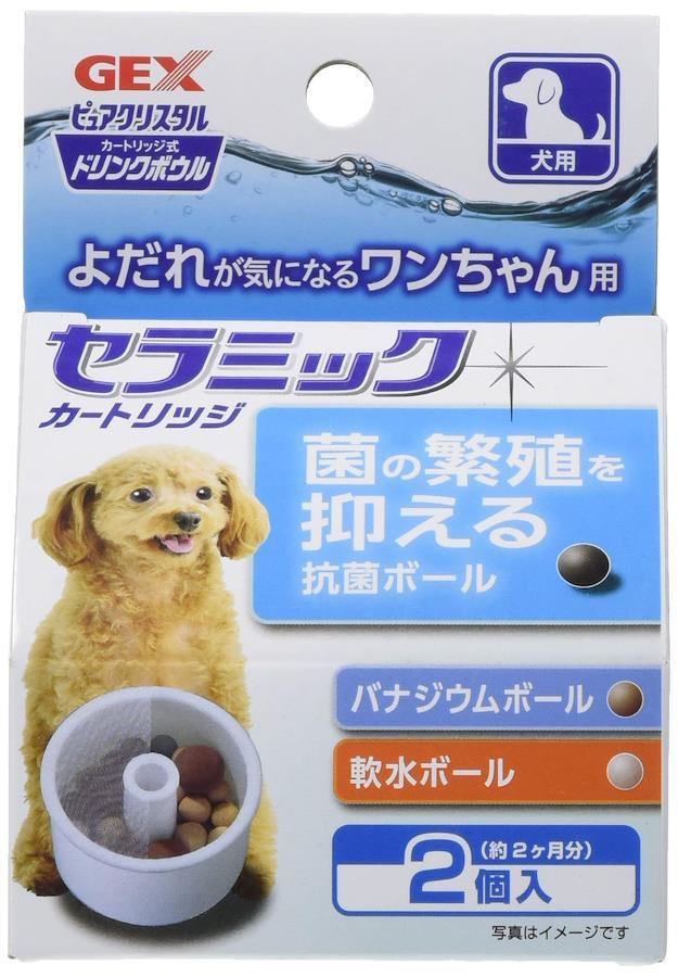 よだれが気になるワンちゃん用 ピュアクリスタルドリンクボウル用カートリッジ 菌の繁殖を抑える抗菌ボール、バナジウムボール、軟水ボール、ろ過ボールで水きれい ●ワンちゃんが飲んだ後の水は雑菌が繁殖しやすくなっています。抗菌ボールで雑菌の繁殖を抑えることでキレイな水を保ち、ボウルのヌメリを軽減します。 ●軟水ボール、バナジウムボール、ろ過ボールでおいしい水に。ワンちゃんの健康をサポートします。 健康維持のため、カートリッジは3週間から1ヶ月をめどに、または目に見える汚れが目立った時に交換してください。 内容量:2個入(約2ヶ月分)