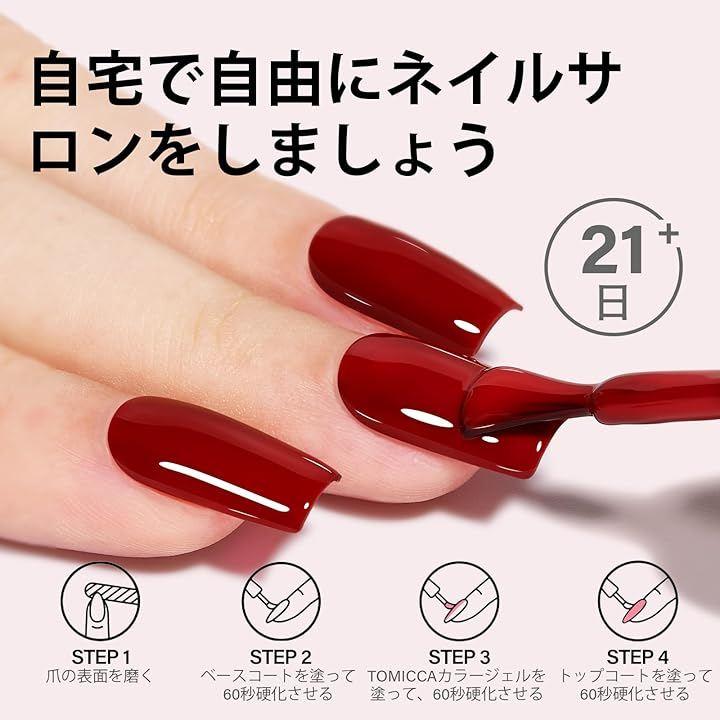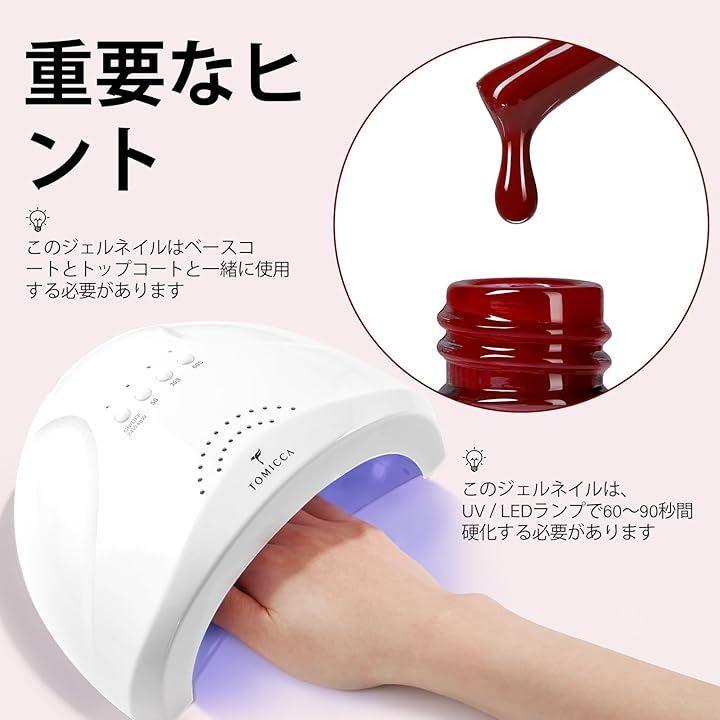 レッドジェル(15ml/本)、TOMICCA ジェルネイル、ジェルネイルポリッシュセットは、UV/LED ネイルドライヤーで硬化する必要があります。
