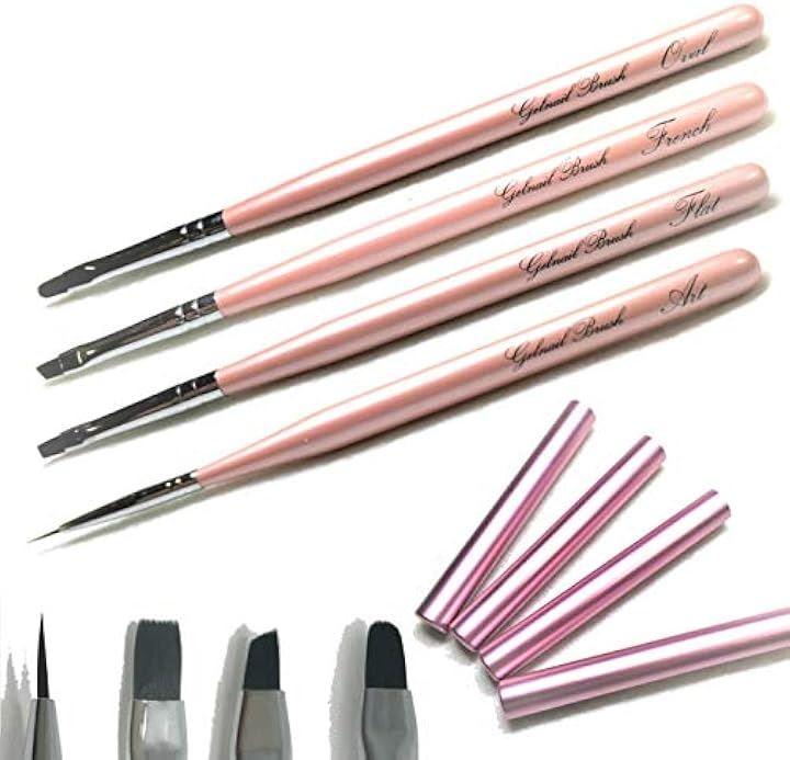 「ジェルネイル用 ブラシ」カラー:コーラルピンク(4本セット)筆:オーバル/フレンチ/フラット/アート8mm *キャップ付き