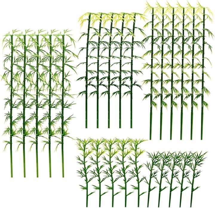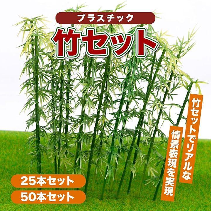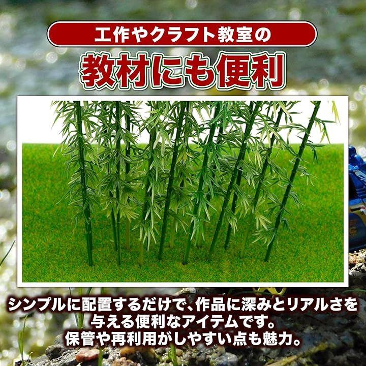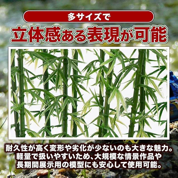 「模型に映えるリアル質感の竹セット」竹の緑色や形状を細かく再現したプラスチック製竹は、見た目のリアルさと扱いやすさを兼ね備えています。