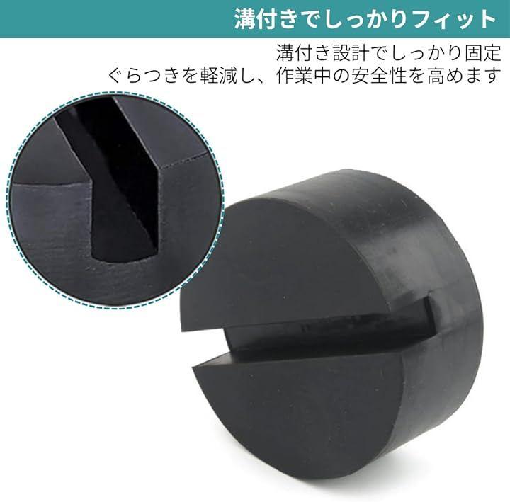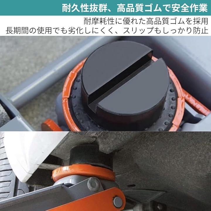 「溝付きでしっかり固定、幅広い車種に対応」ジャッキにセットし、溝をジャッキアップポイントに合わせてはめ込むだけの簡単装着。