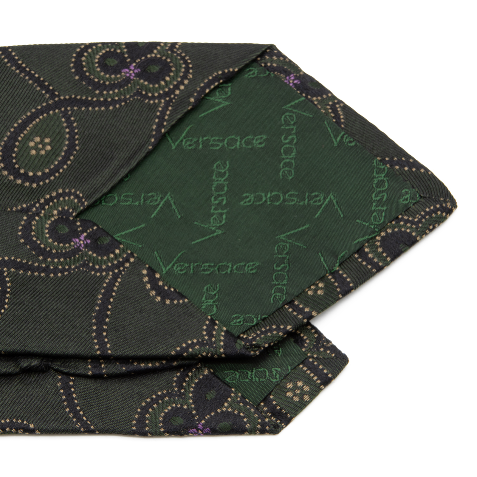 こちらは幸運を呼ぶクローバーを全体にあしらいました、ジャンニヴェルサーチェのネクタイでございます。