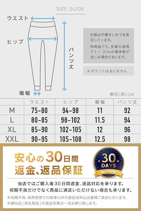XLサイズ:パンツ丈 96cm / ウエスト 85~90cm / ヒップ 102~105cm / 裾幅 11cm