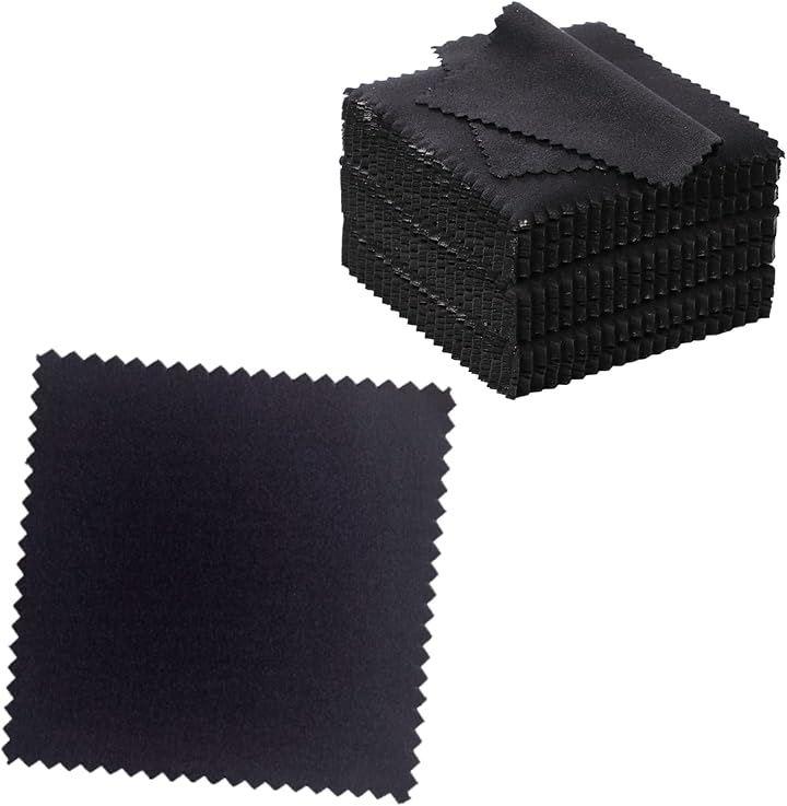 「商品詳細」 内容量:50枚セット サイズ:1枚あたり約8x8cm 素材:スエード カラー:ブルー、ブラック、グレー 用途:シルバー磨き、金属磨き、アクセサリーケア、貴金属のクリーニングなど