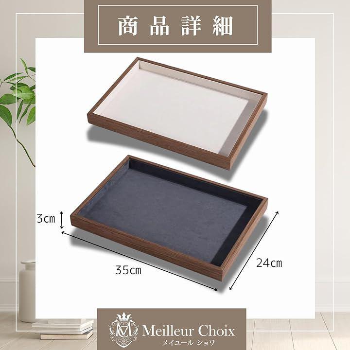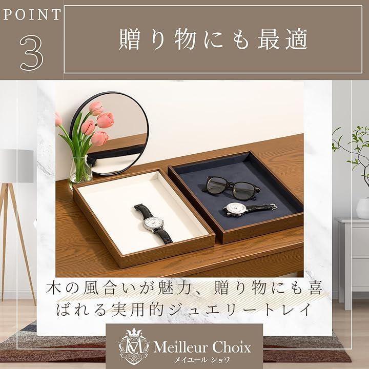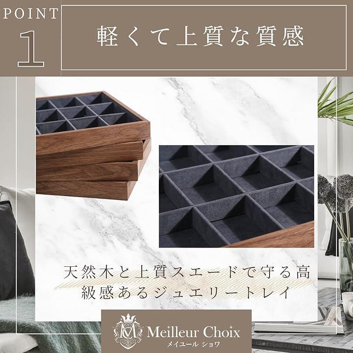 Meilleur Choixのジュエリートレイは、アクセサリーの収納と展示を美しく演出する高級感のある木製トレイです。