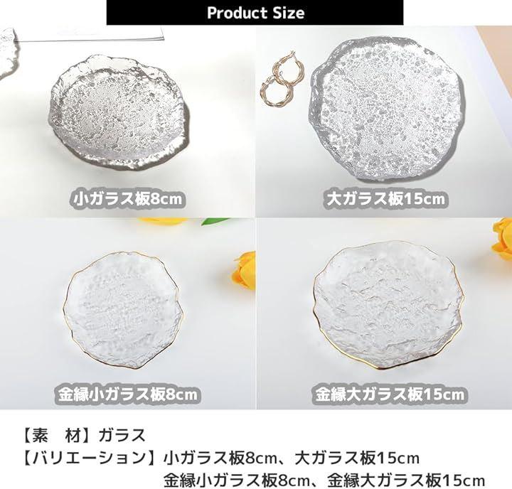 「素材」ガラス「バリエーション」小ガラス板8cm、大ガラス板15cm、金縁小ガラス板8cm、金縁大ガラス板15cm