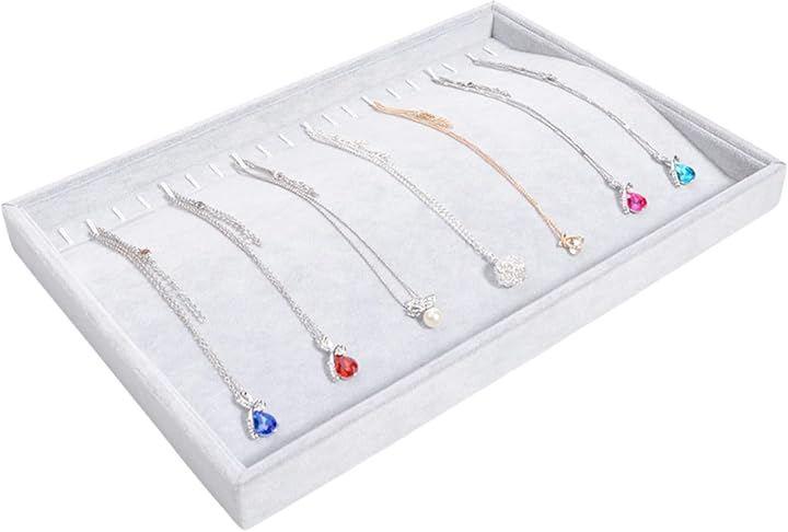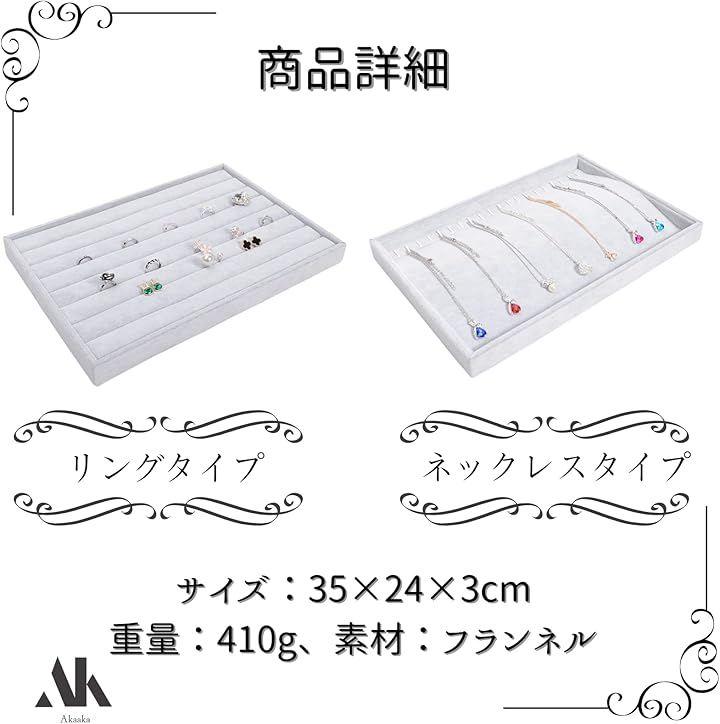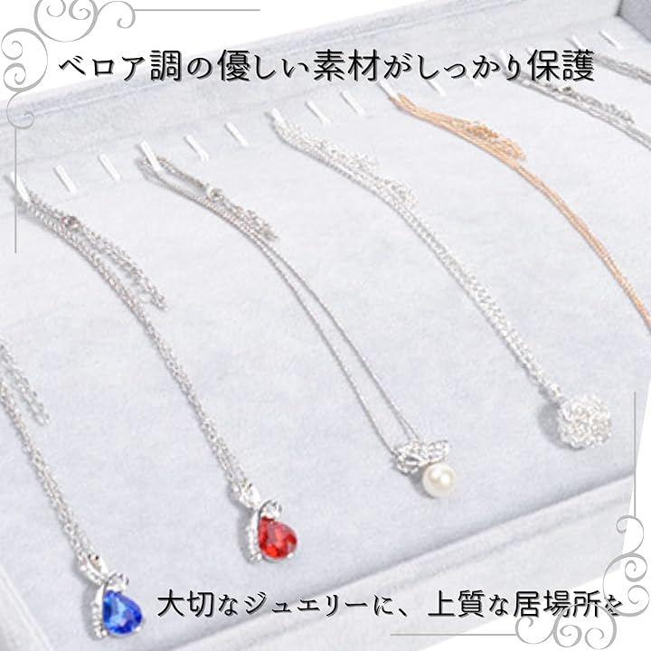 多数の指輪やネックレスを並べて収納できる設計で、限られたスペースでも効率的に展示できます。