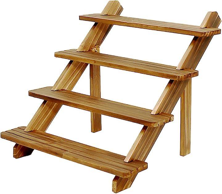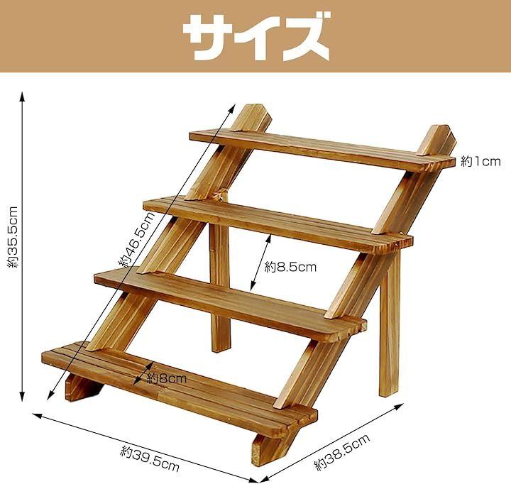 ウッドスタンド、幅39.5x奥行き38.5x斜め高さ46.5cm、ひな壇間の高さ8.5cm、ひな壇奥行き8cm、ひな壇板厚さ1cm、四段、天然木、ブラウン、付属品金属ビス*天然木材を使用しているため木目の出方に個体差があります。